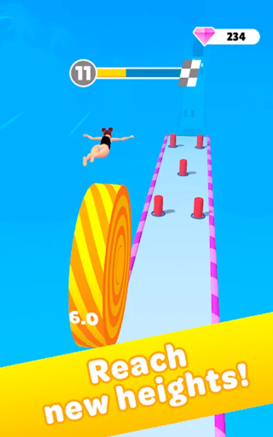 Begin your avoid obstacles rush in a calm and simple way passing through adding or multiplying gates, but then it is definitely getting more tricky as you should avoid gates that reduce your force. Show your artistic skills in an incredible jump contest and win amazing rewards or earn coins! And be ready to complete & enjoy awesome bonus run levels! Jump over tremendous abysses as a real acrobat! Just feel adrenaline & courage!