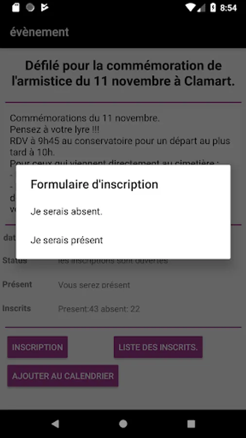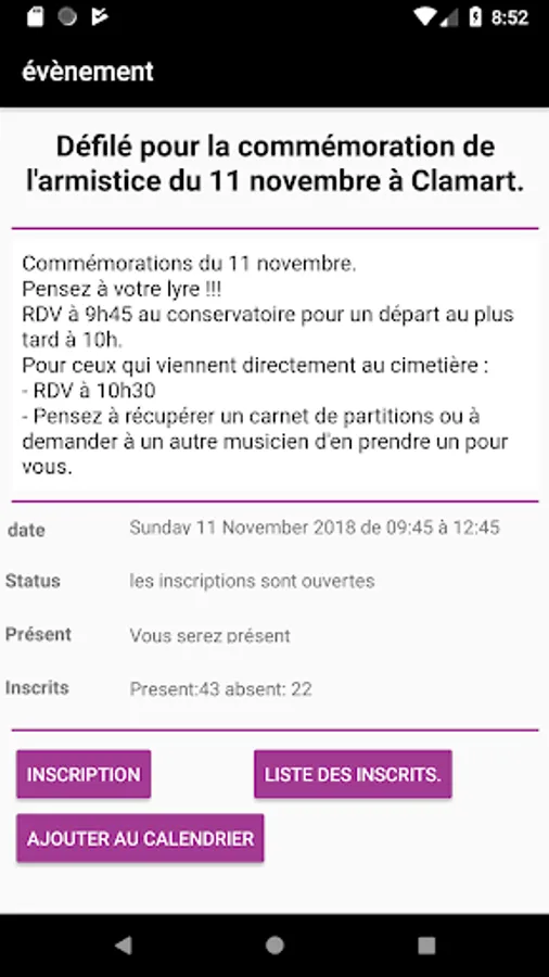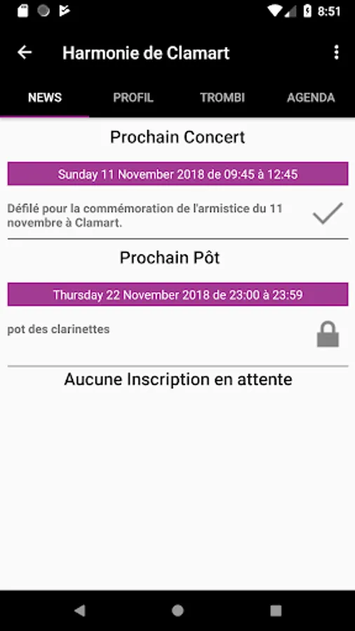 Reserved for the moment to the members of the association, the application allows to connect with his account for: