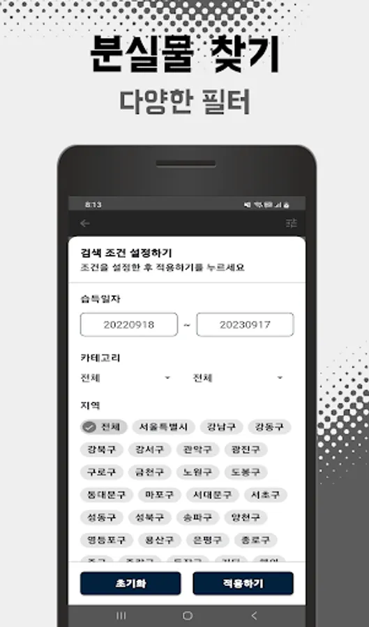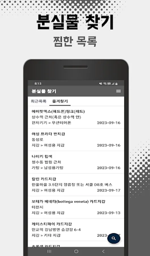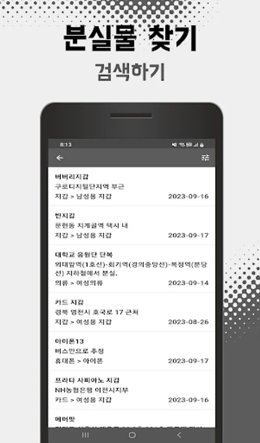 ② Search: You can easily find lost items that meet your criteria by filtering by period, category, or region.