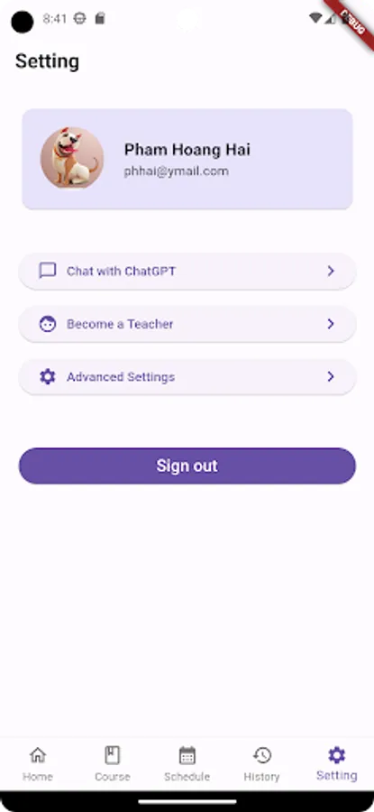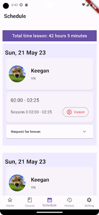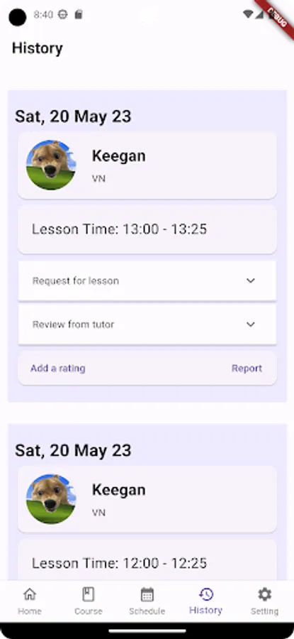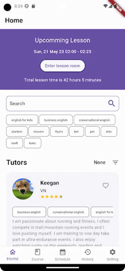 Tutor booking application, allowing users to book tutors on the application. Once booked, users and tutors can communicate via video call. In addition, the application provides features to manage class schedules and history and history of lessons as well as pdf textbooks for users.