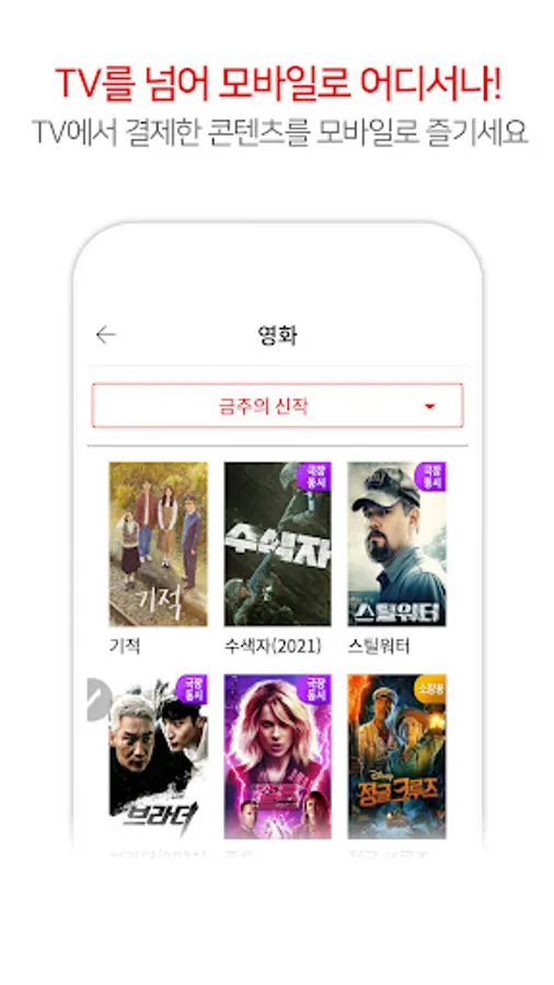 After pairing the set-top, enjoy the content paid for on the TV on your mobile. (Excluding content that does not have mobile rights, such as terrestrial broadcasters and CJ affiliates)