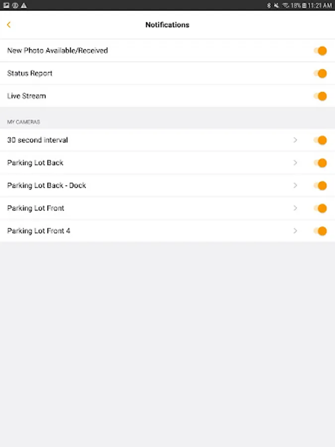 -Receive mobile notifications and status reports from your cameras in near real-time