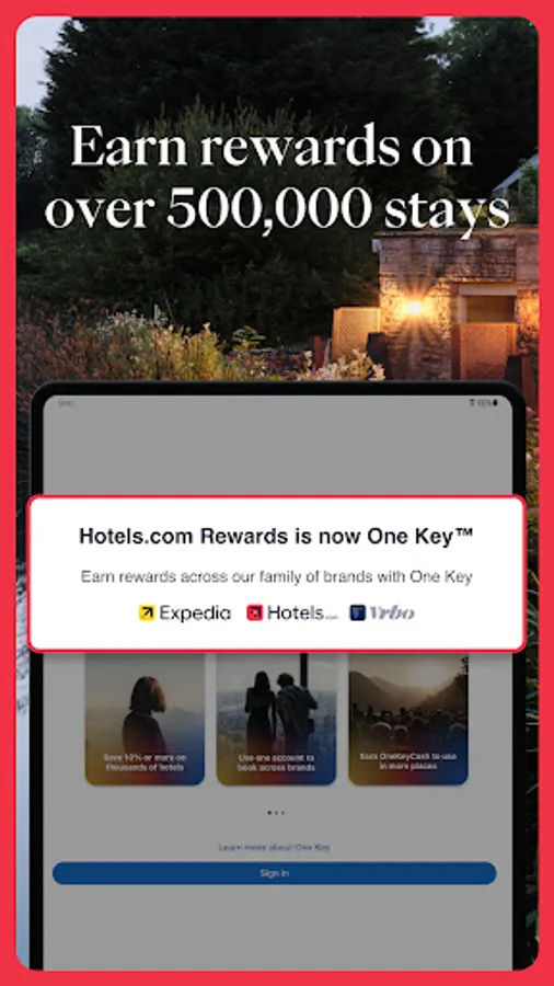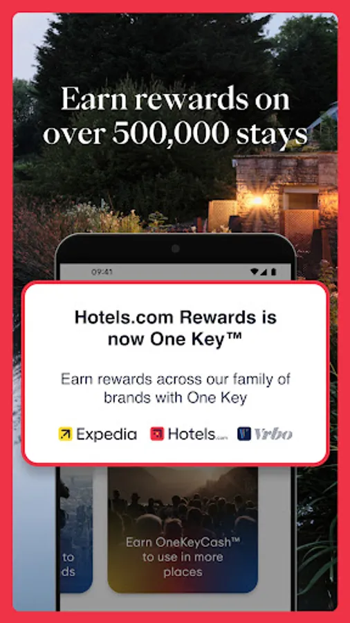 - Join One Key™, our travel program that unlocks a world of rewards and instant perks. One Key members earn our rewards currency, OneKeyCash™** across Hotels.com, Expedia, and Vrbo by booking eligible hotel stays, flights, vacation rentals, car rentals, and more.