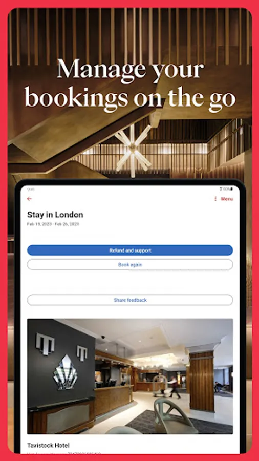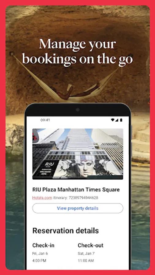 - Save your confirmation and access your hotel or vacation rental booking details anytime – even offline.