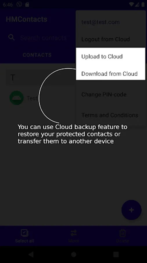 Hide My Contacts can be used as a cloud storage. You can easily copy your contacts, save them in the storage and in other devices.