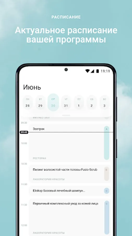 - Plan your day at the resort in the app's calendar with a detailed description of the procedures and events of the resort