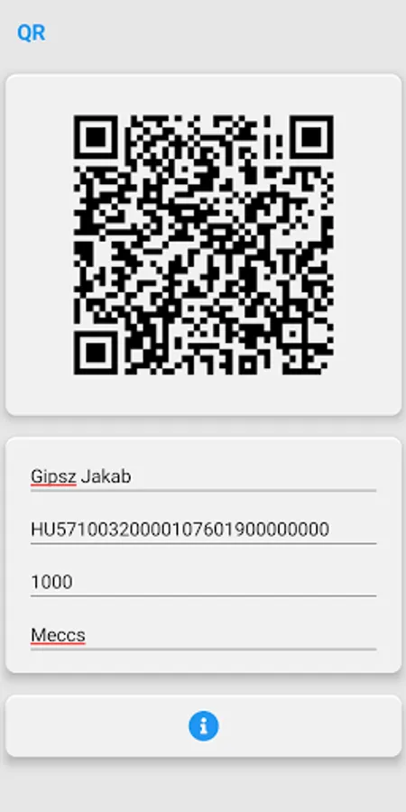 The application can be used to generate a QR code for use in the instant payment system, which includes the name, bank account number, amount and other comments provided by the user. By scanning the QR code with the mobile applications of the banks, a transfer to the specified account number can be initiated.