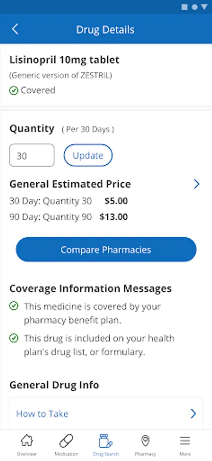 Search for drug information and cost estimates, view and compare pharmacies near you, view reminders related to your prescriptions, and identify savings opportunities to get the lowest price on your prescriptions.
