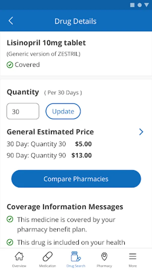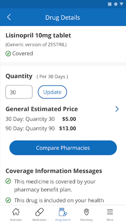 Search for drug information and cost estimates, view and compare pharmacies near you, view reminders related to your prescriptions, and identify savings opportunities to get the lowest price on your prescriptions.