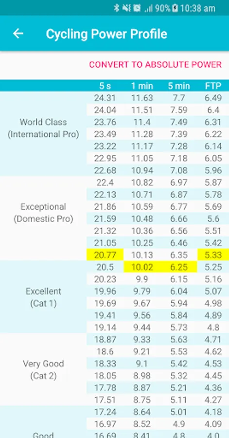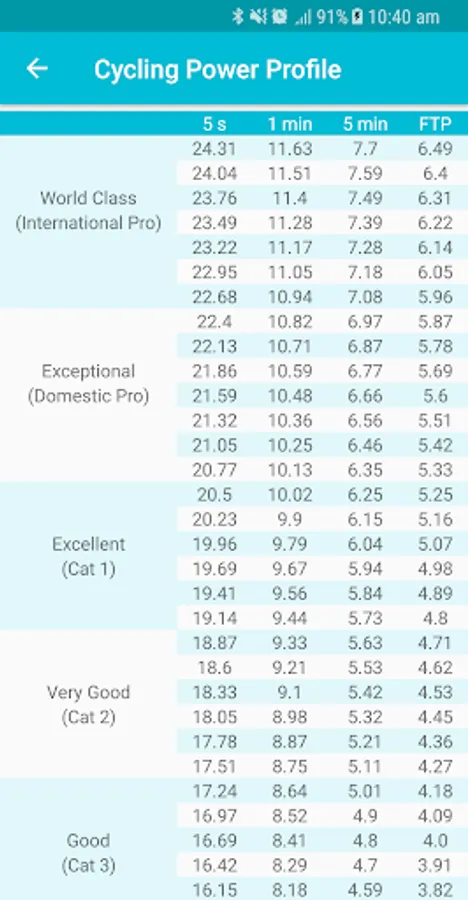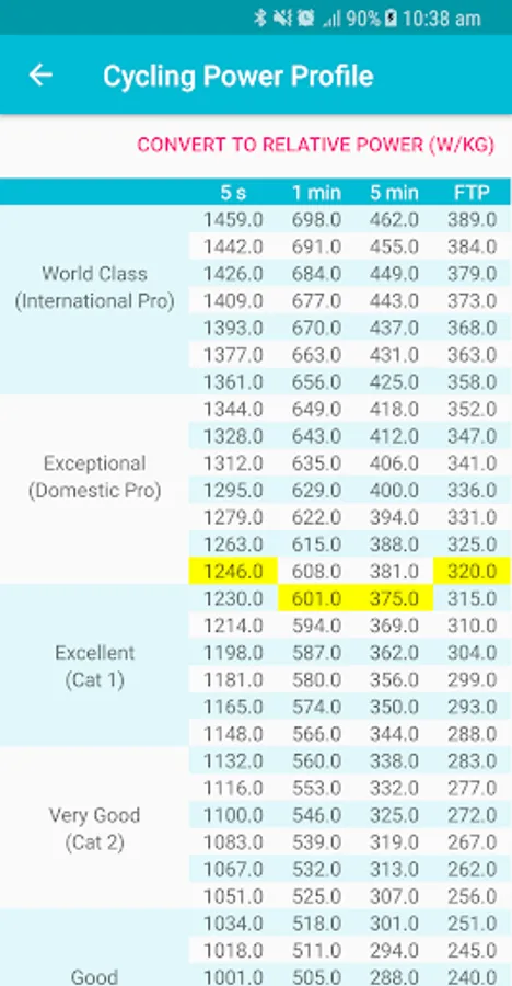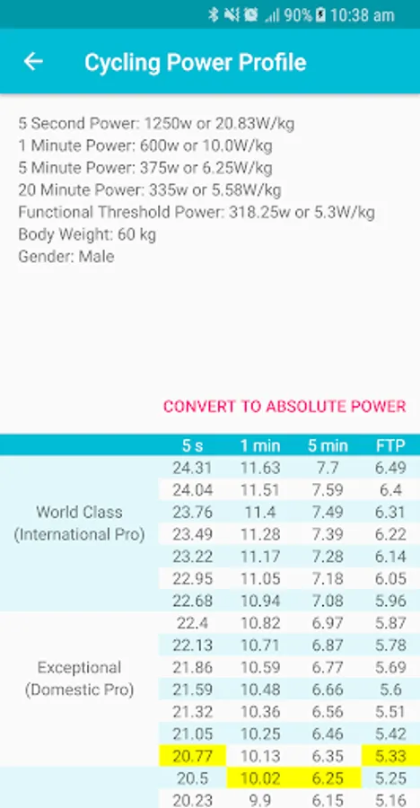 Cycling Power Profile calculates your cycling power profile based off your power outputs.