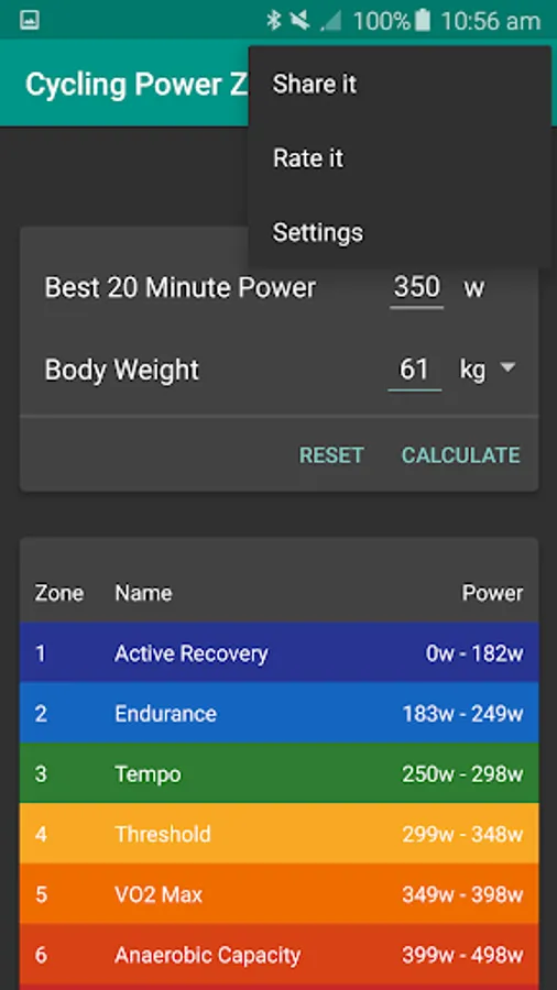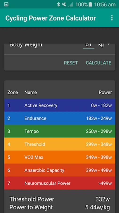 - Calculate power training zones based off your Functional Threshold Power (FTP)