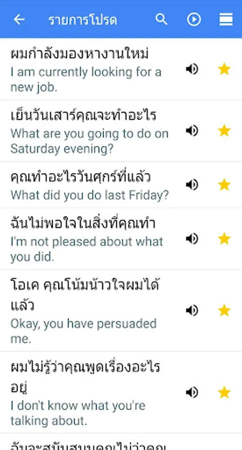 You can save your favorite English sentences and phrases by selecting the star in front of any sentence in the app.
