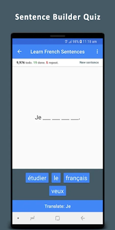 If you incorrectly select the correct words for a sentence, the sentence will be marked as repeat and you will be shown this sentence at a later time.