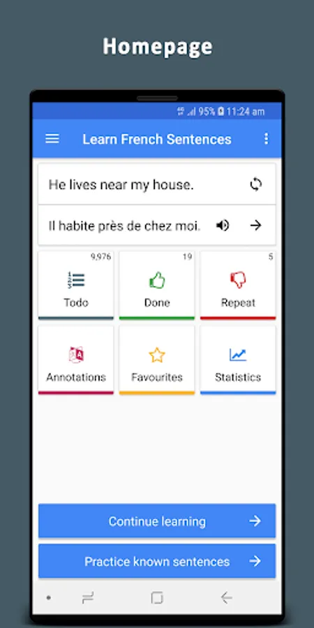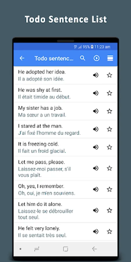 You can save your favourite French Sentences and phrases by selecting the star next to any sentence in the app.