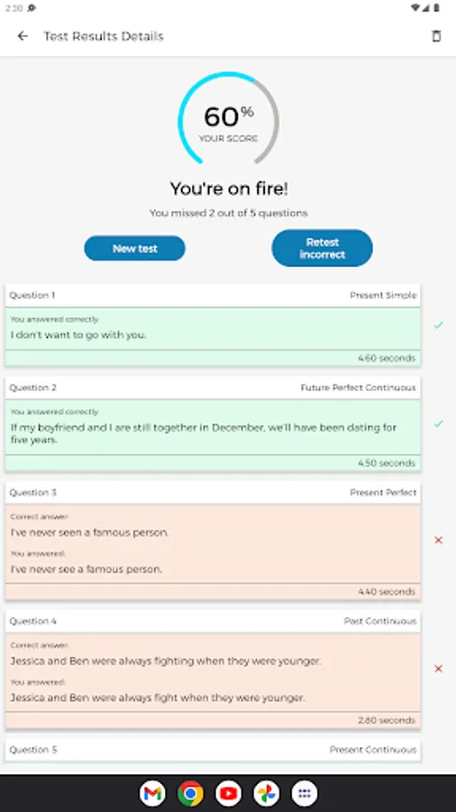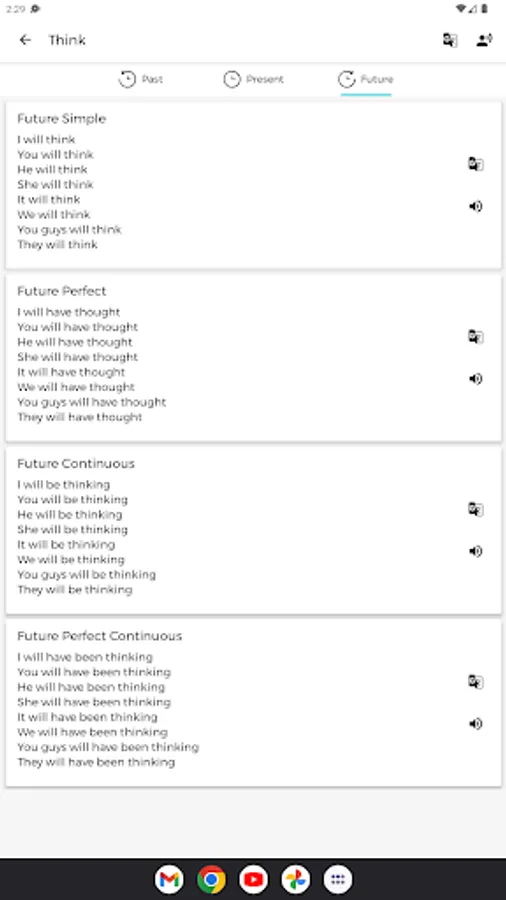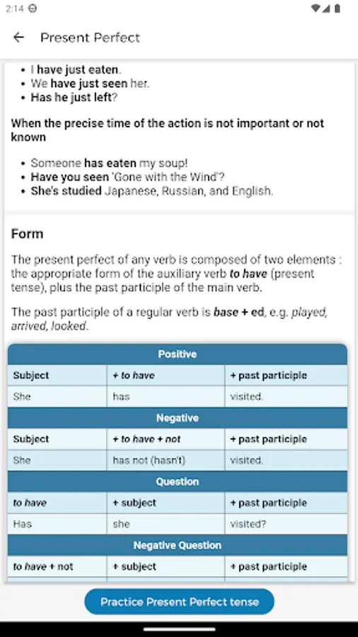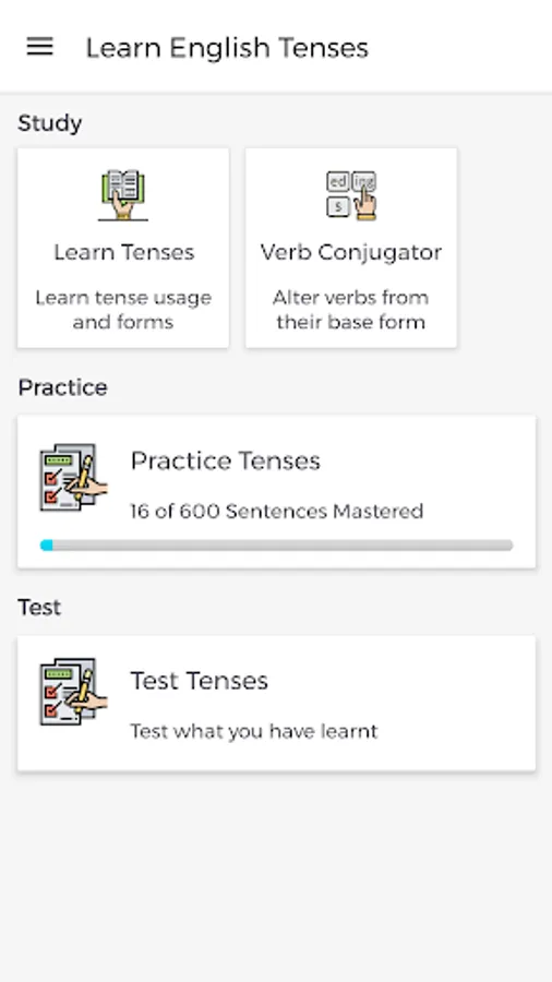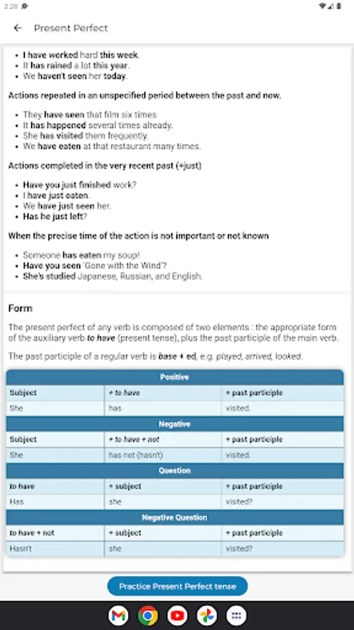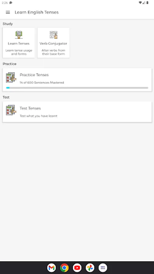 Learn English Tenses is a free app which will help you learn the correct English tense to use and also improve your grammar.
