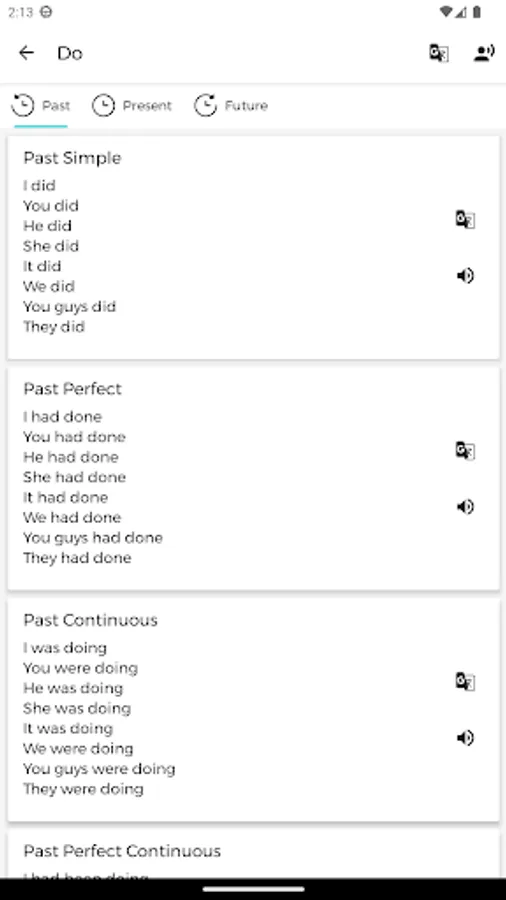 Past, present and future tense are divided up into 4 sub tense types. Study these tense types before practicing using the quiz and test.
