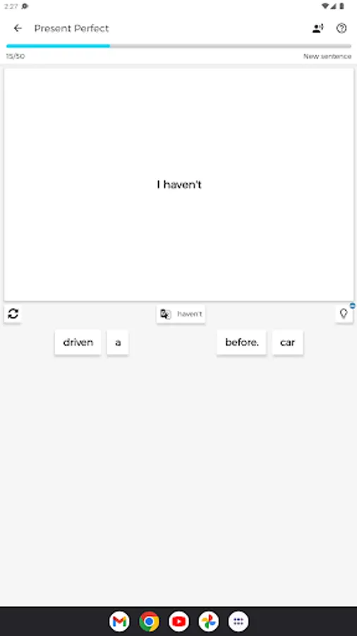 You are shown jumbled words which make up a sentence in English. You have to select the correct order of the sentence word by word.