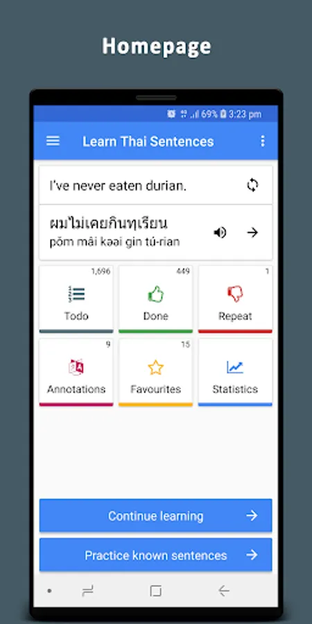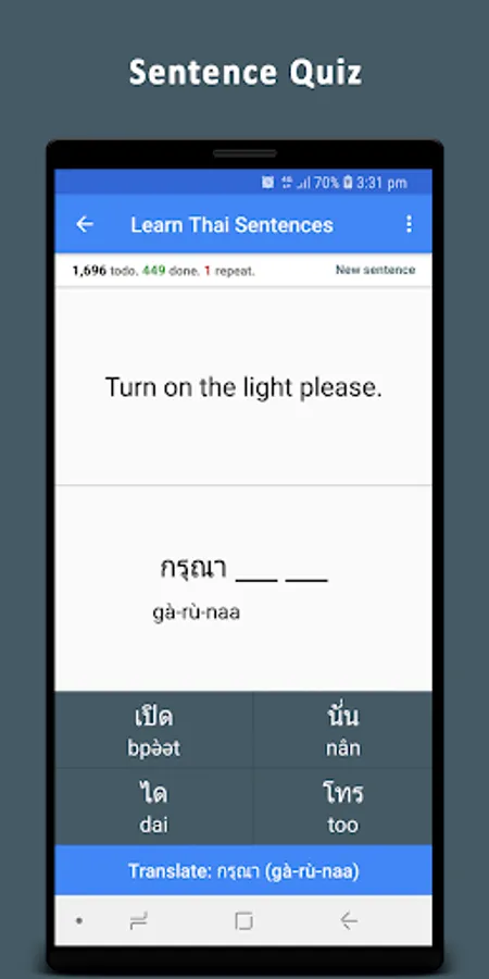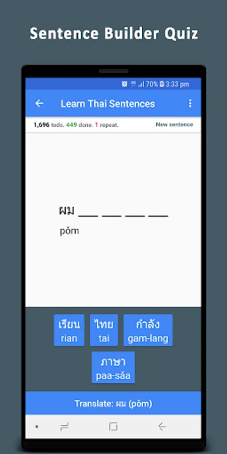 Learn Thai Sentences will help you to learn Thai language with ease. We believe this is the best app to learn Thai language as it utilizes an assimilation-based approach to language learning. By consistently providing comprehensible input, you will naturally begin to understand and internalize correct sentence structure and vocabulary.