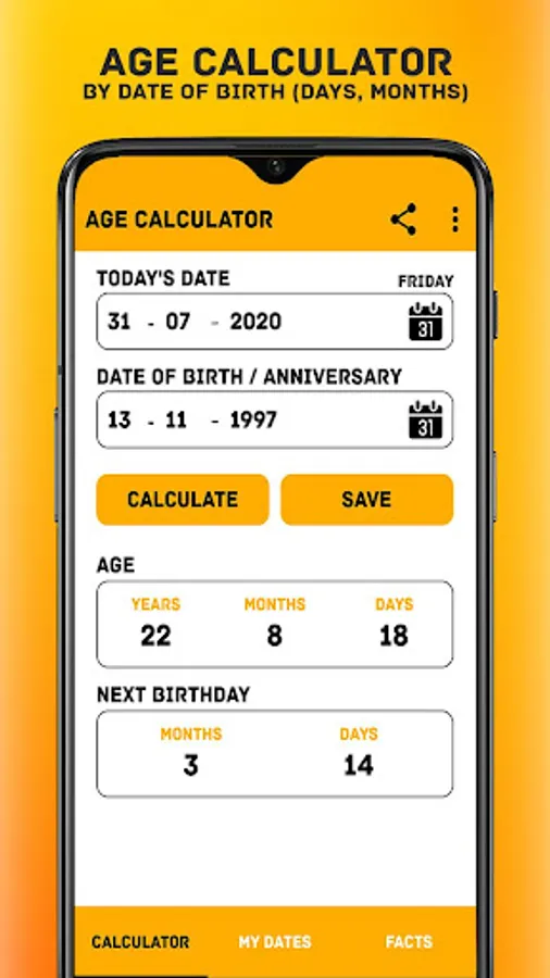If you want to know how old you are then this app is for you. This app will calculate your exact age in year, month, day. It also lets you know the remaining time for your next birthday. All you have to do is to just enter your birthday and rest of all calculation will be done by application.