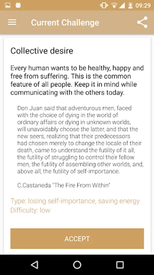 The app contains a set of practice exercises from books of Carlos Castaneda, toltec magic, shamanism and others. It allows you to develop such skills as: