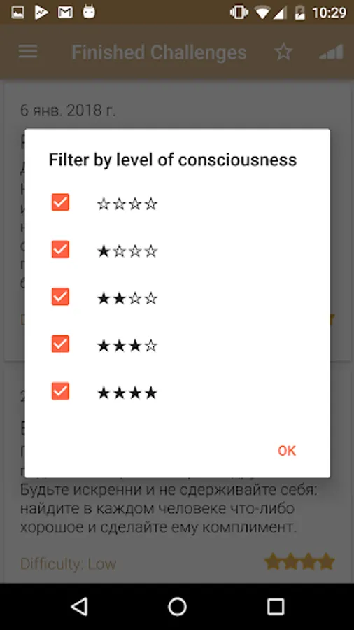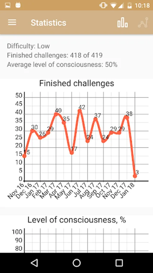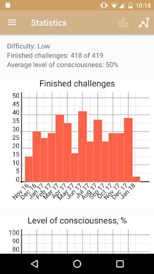 A new task is available every morning; it can be taken or skipped. The practice continues during the day and finishes at night. The finished tasks are recorded in the Journal. Every task has its own difficulty level. More difficult tasks will be given with time. You can enable reminders in the Settings which can help you in daily practice.