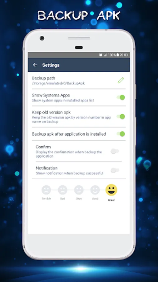 • App backup restore is easy extract apk, backup apk, backup assistant to external SD card