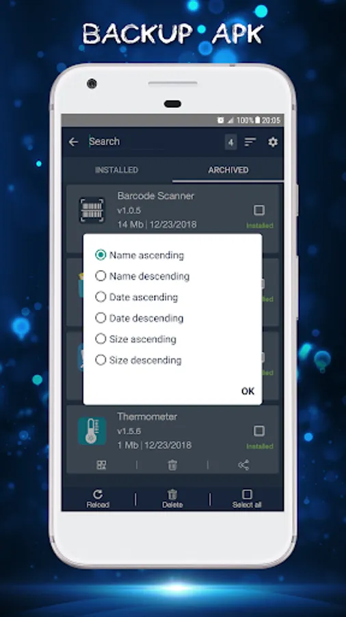 • Apk assistant to sort apps by name, date, size