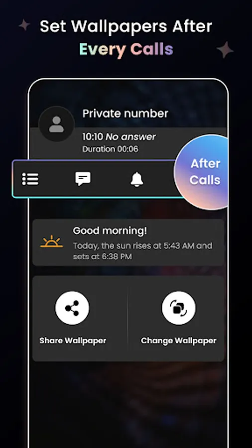 After call, easily change or share wallpapers to make personalization seamless and fun. Discover an extensive library of premium-quality wallpapers within the app, featuring diverse styles and themes to match every preference.