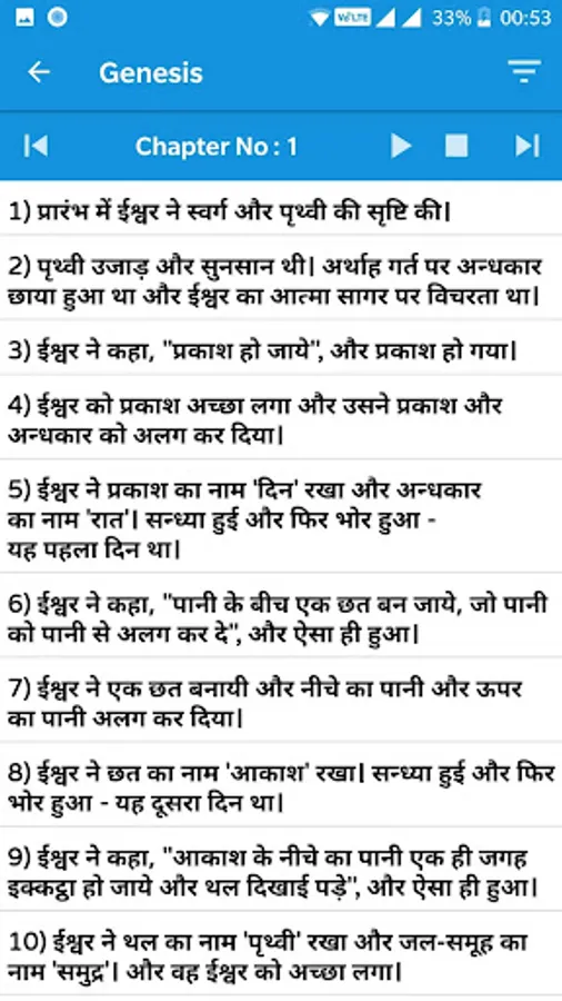It is a Free, Offline, Super Fast app to read Bible in Hindi and English.