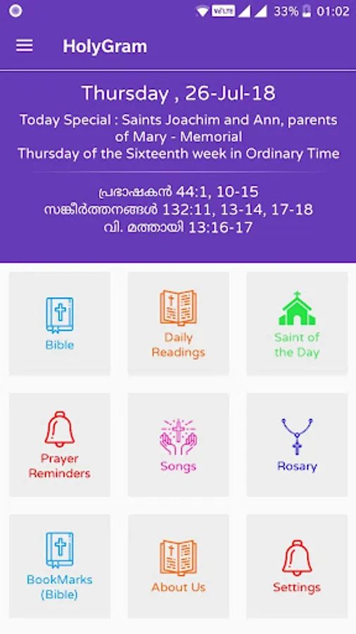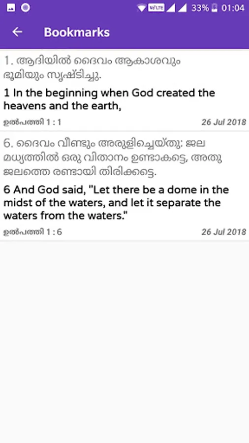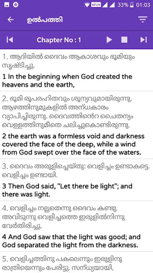 It is a Free, Offline, Super Fast app to read Bible in Malayalam and English.