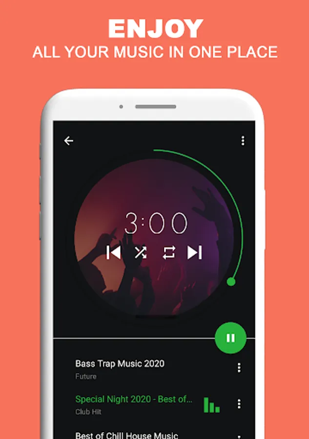 Enjoy, as it is one of the best HD video and music player for android tablet and android phone. You can found playlists, like recent, favorite, add new. It is a smart and convenient mp3 music player and will be your next daily usage app.