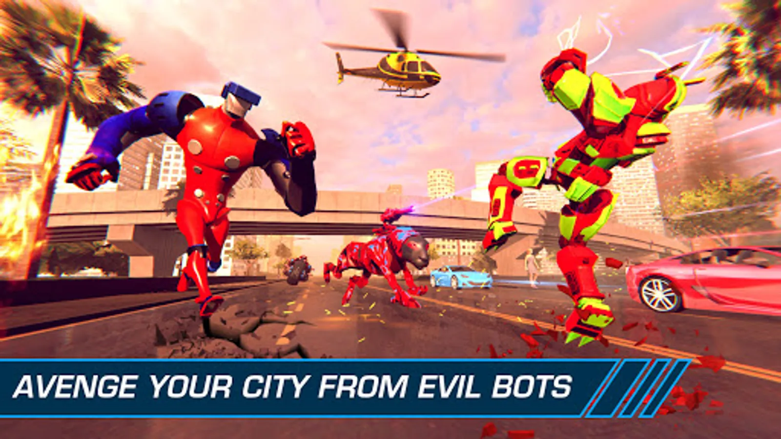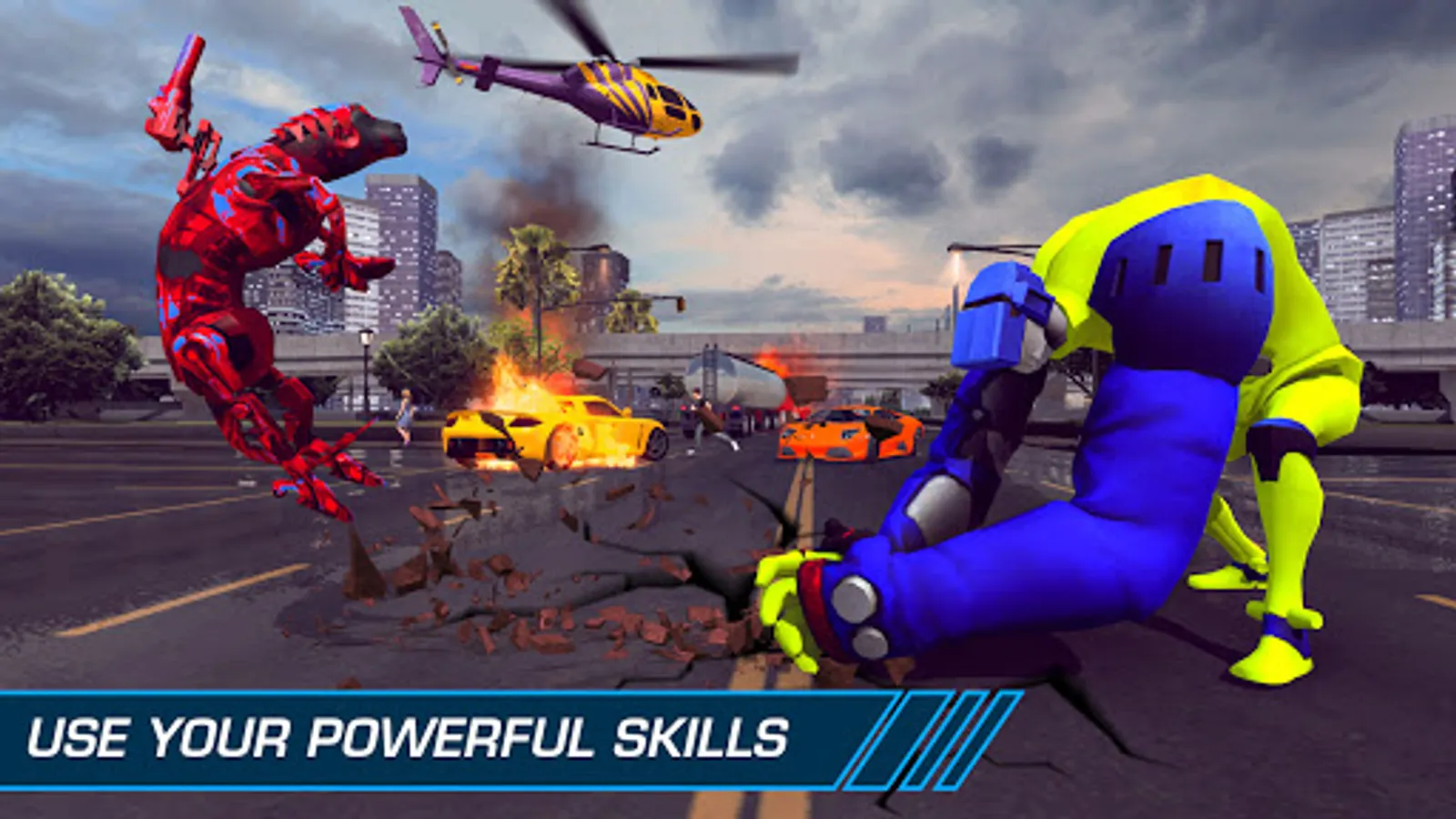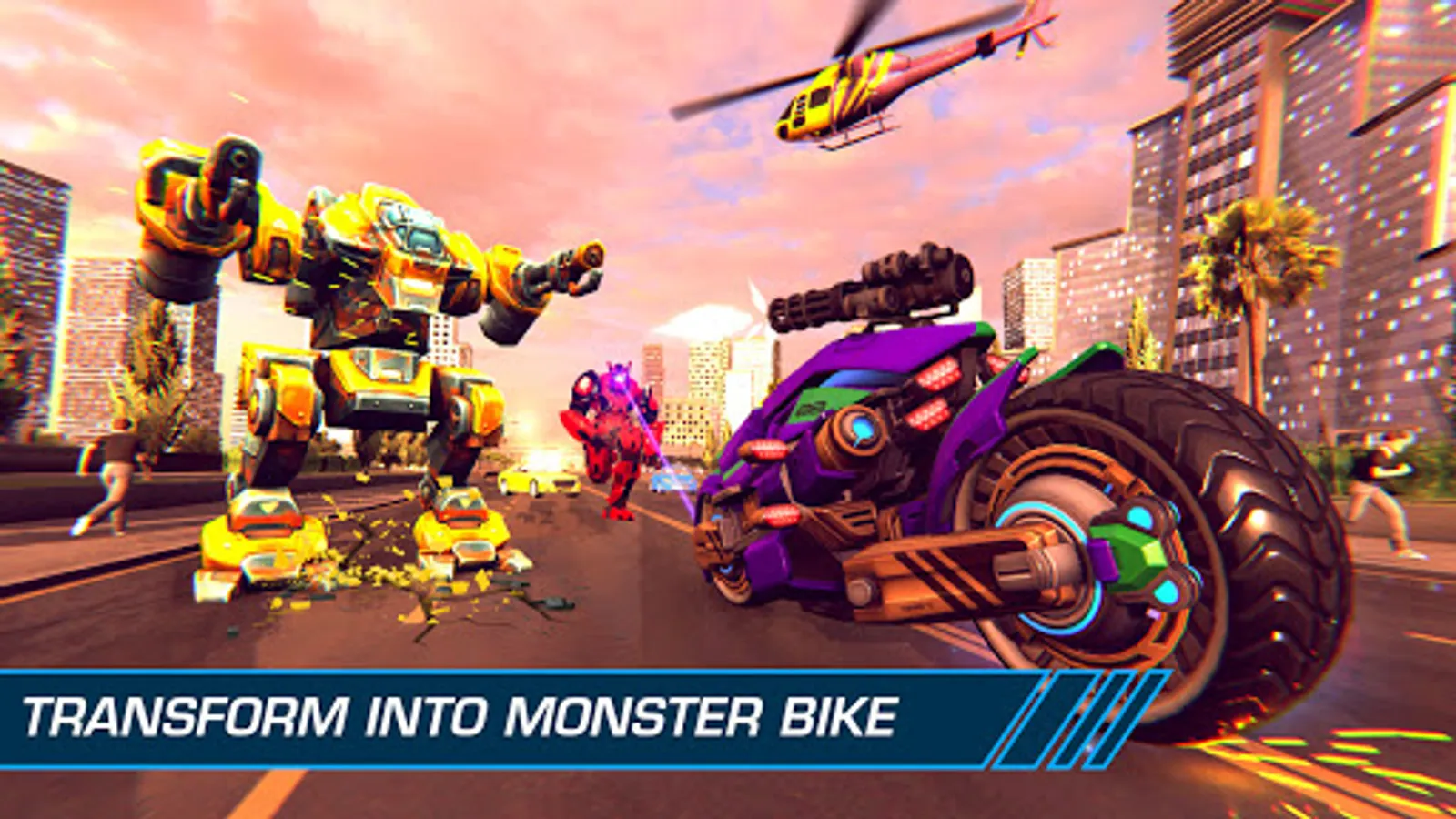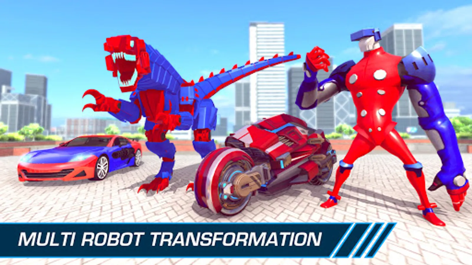 Get one of the best robot transformation game ever. You are multi transform robot and have capability to transform not only into robot car, flying robot bike and dino robot but also into tetra robot. You have shooting skills to destroy opponent bots. You have to accomplish challenging missions against gangster mafia robots. They are large in number with modern ammunition and shooting skills but you are a tetra robot transformable into flying robot bike and robot car and also into dinosaur robot. You have the power to transform into variety of multi robots according to missions and situations. Download TETRA ROBOT TRANSFORM: ROBOT SHOOTING GAME, one of the best of robot transform games and robot fighting games. It is an electrifying merge of robot games, dinosaur games and multi robot transformation like Tetra Robots. You may also entertain with road and flying driving skills after transforming into car robots and robot bikes never seen before in any robot car games and robot bike games.