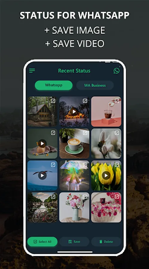 11. Status Saver: Save videos or image statuses to your device for convenient viewing.