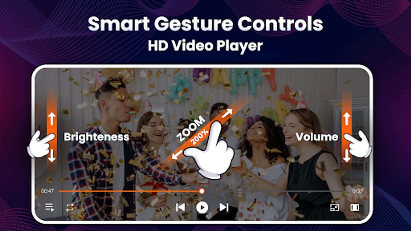 All in one hd video media player can fetch all your videos from the gallery and SD card to one single location. If you like a song video, you can tap repeat to listen that song again with mp4 media player. Zoom In, Zoom Out This is the uniqueness of this video player you can now zoom in or zoom out your favorite movie to watch it clearly. Popup Video Player feature allows you to perform other activities on mobile such as using calculator or setting alarm while playing videos.
