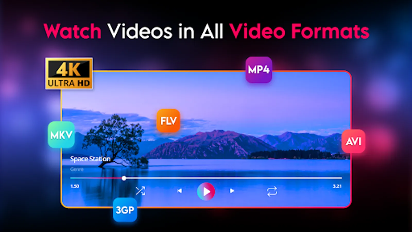 Play all type of 4K videos on your android device. No more hassle to search for a video player on your device. We solve the problem of playing videos for you. Video Player supports all popular video formats, including 3GP, AVI, FLV, M4V, MKV, MOV, MP4, WMV, etc.