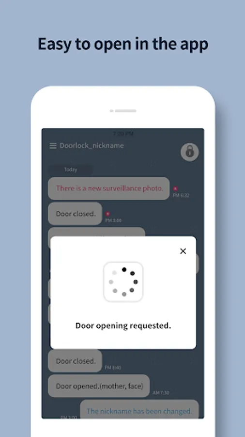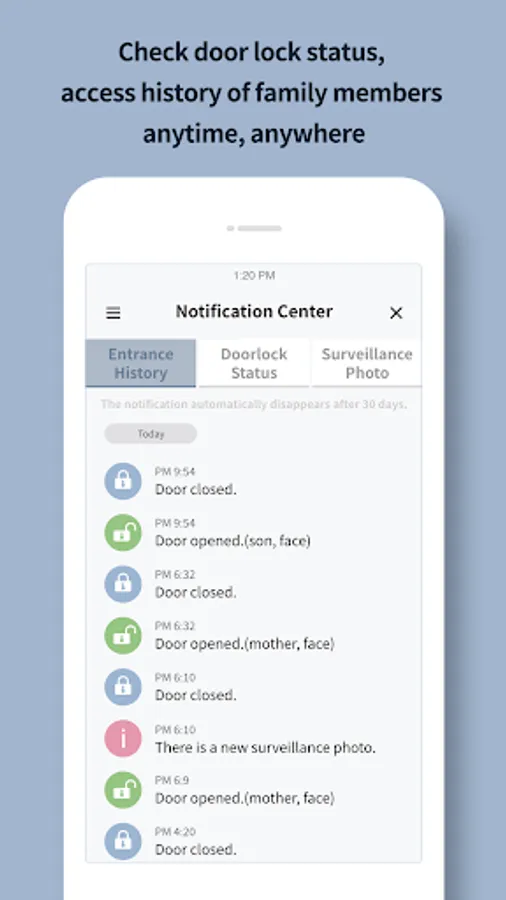 You can monitor the status of the door lock anytime, anywhere, check access history, issue temporary passwords, and use crime prevention mode.