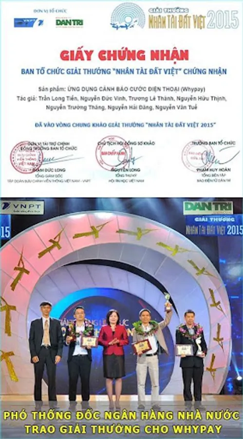WhyPay - Application Load Warning freight and online card has won three Vietnam Talent 2015 in the field of Information Technology, a prestigious award by the Reuters report, broadcasters VTV2 & VNPT and organizations. Top 25 Startup Vietnam 2017 held by vnExpress.