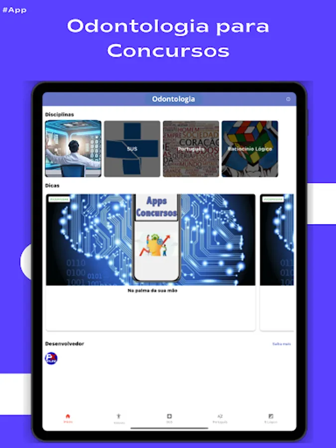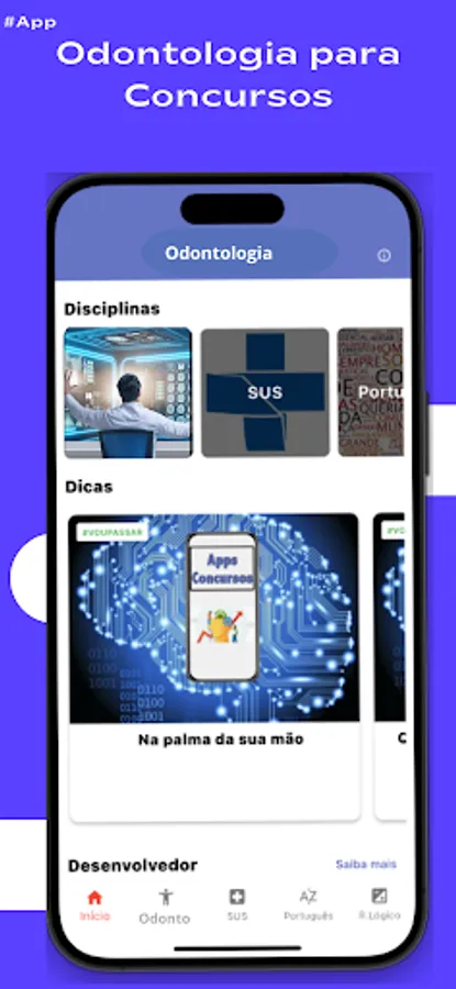 It offers hundreds of questions on dentistry, the Unified Health System (SUS), Portuguese, and logical reasoning, geared toward public exams, residencies, and selection tests.