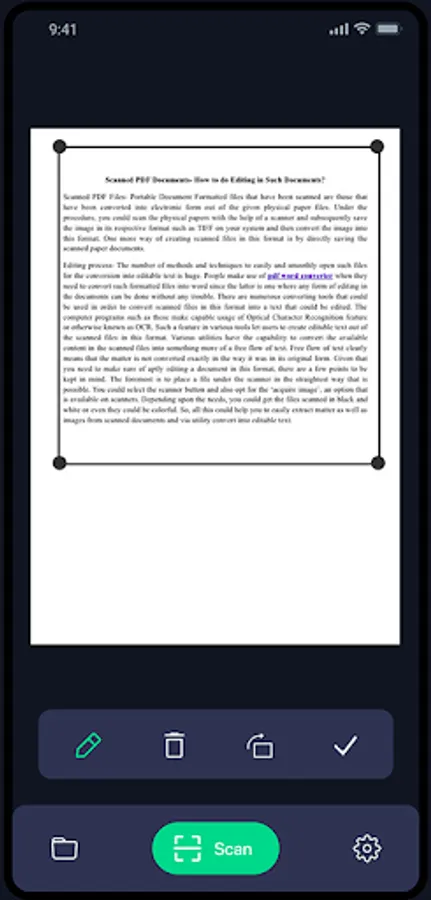 3. Our application will auto detect the border corners of the scanned Documents (which can be cropped by User).