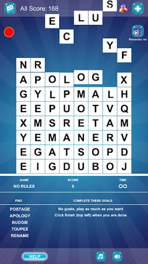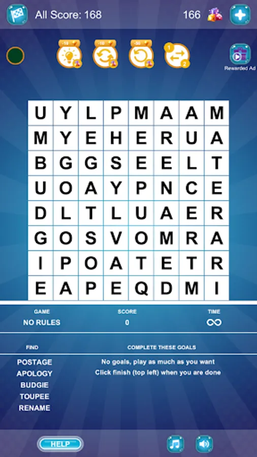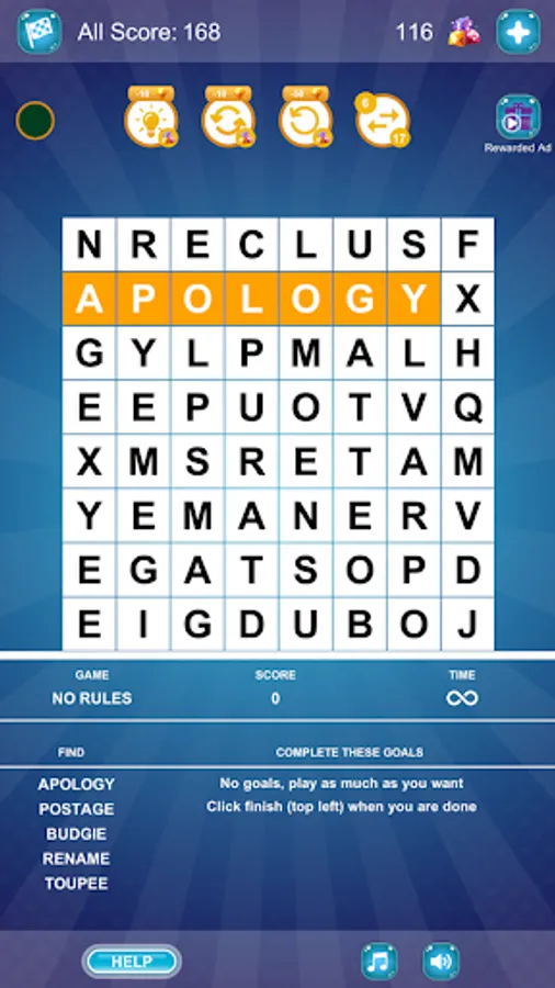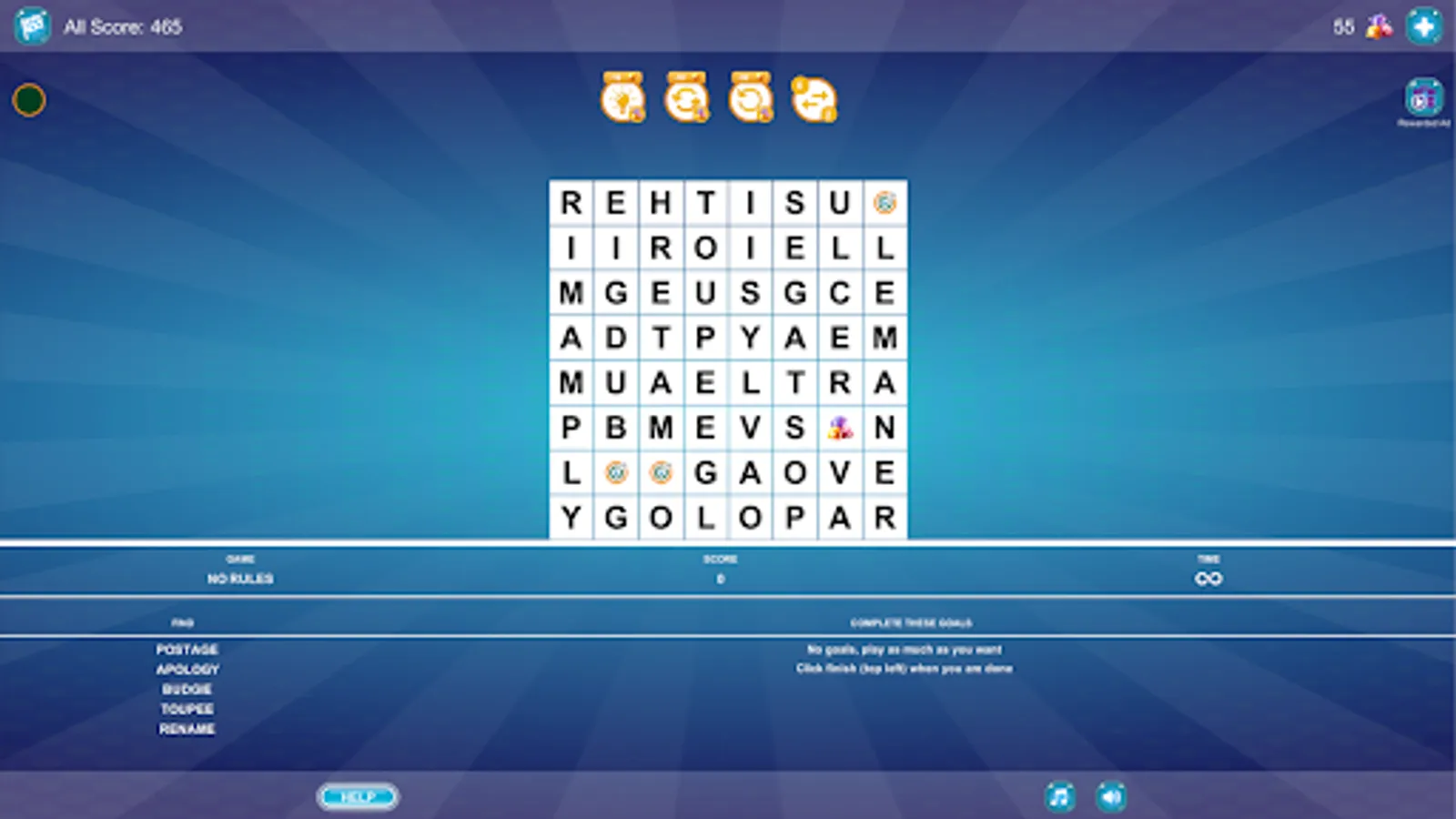 If you want to play an unlimited game, select the “No Rules” word puzzle. In this game, there are basically no rules, no goals, and you can play as much as you want. Once you are done, click on the finish button and you will be rewarded for each word you find.