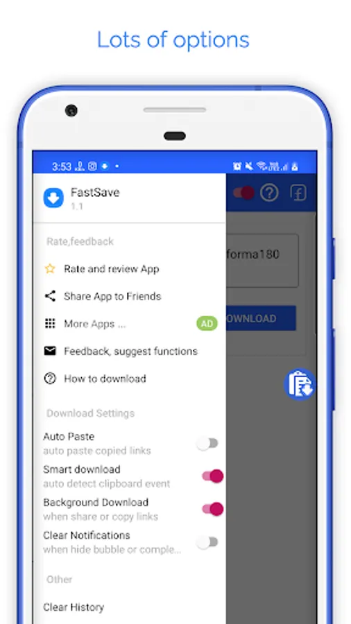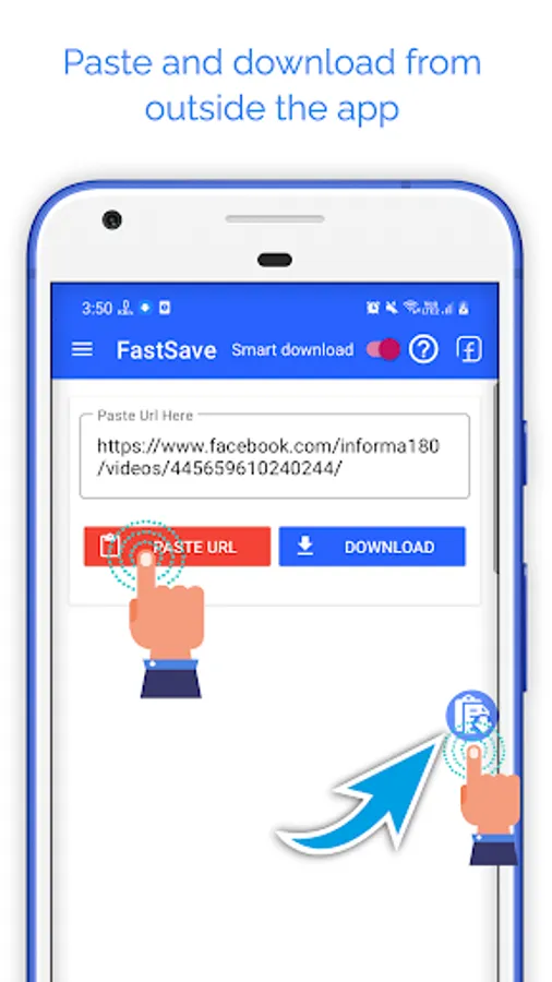 FastSave Video Downloader have unique way Smart Video Downloader witch allow you to download video outside App no need return to app .