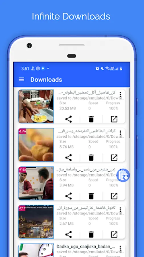 * Watch offline, share, repost, delete, view info the downloaded video.
