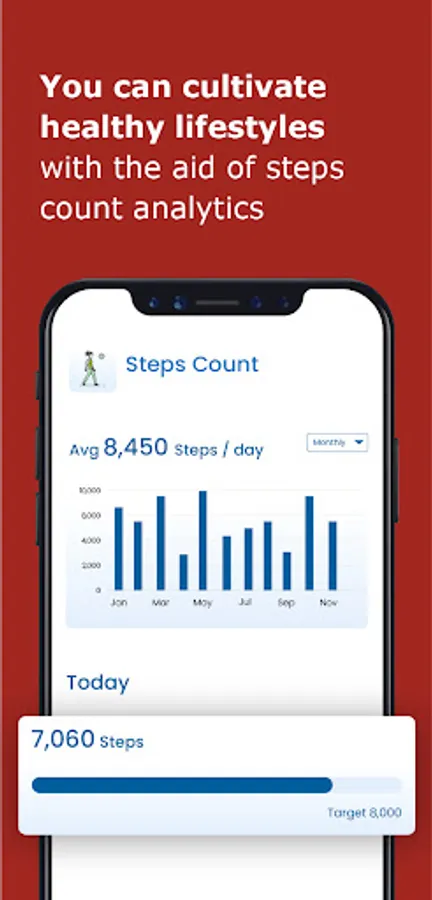 ⌚ App syncs with fitness apps to track steps, sleep, and active hours, with or without wearable's.