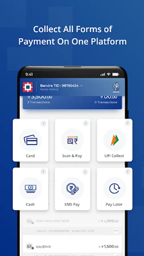 1) Accept payments from all modes seamlessly Cards - Tap N Pay, UPI, SMS Pay, and QR.