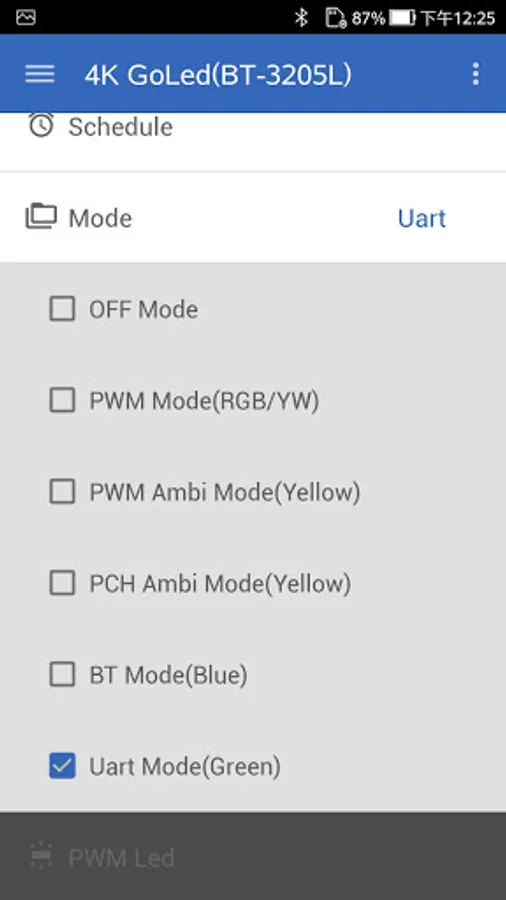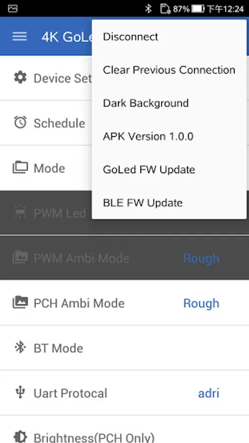 The APP provide fast remote control for GoLed. For easy use to switch mode or setting. GoLed support PWM-Led, PCH-Led, 2812-Led and DMX512 light. Support Auto-Ambient light , BT Control light and USB to Uart Ambient light mode. Provides 5 sets of time alarms that can be automatically turned on and off in unattended mode.
