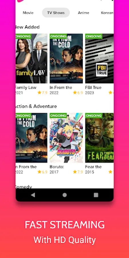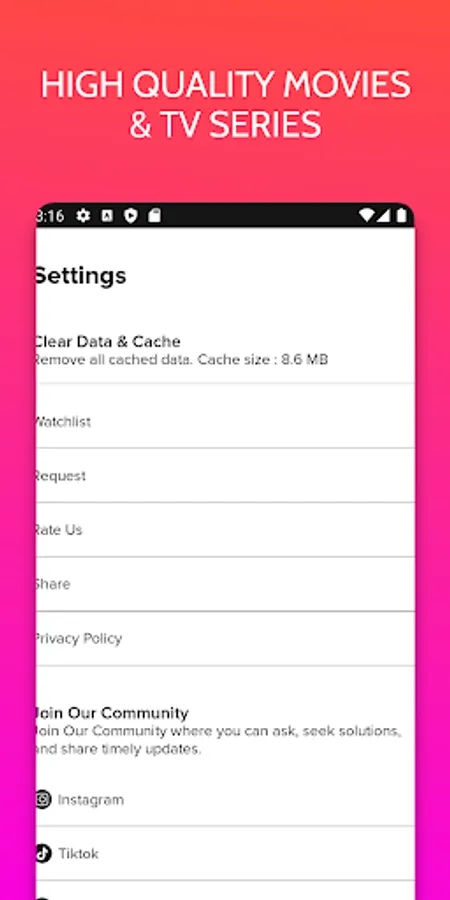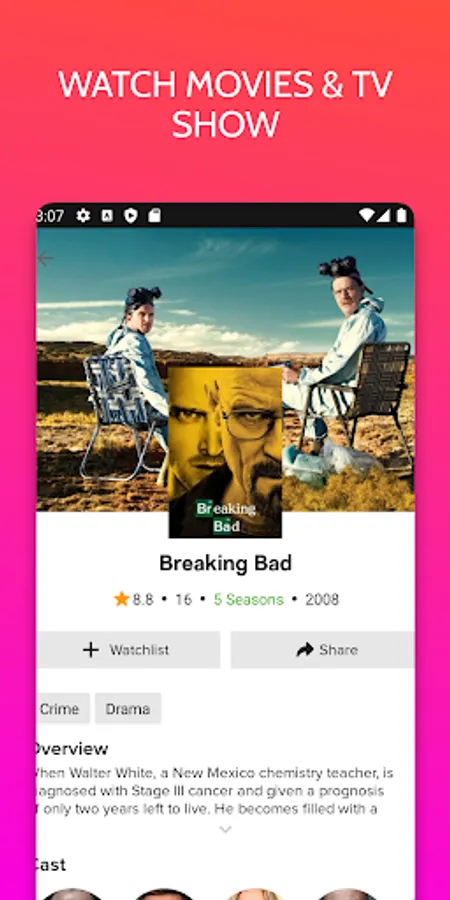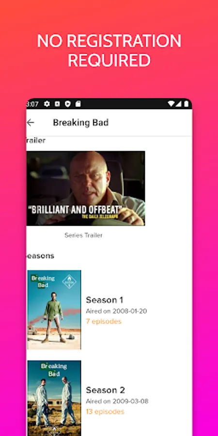 In the application, you cannot watch films and series for free, but you can find in the application a complete description of the series and films and also the service on which you can watch them.