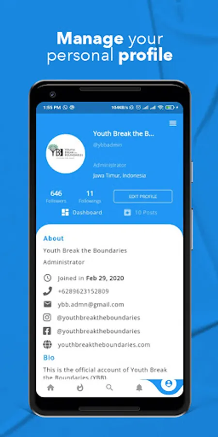 This is a social application for Youth Break the Boundaries Foundation community where you can: