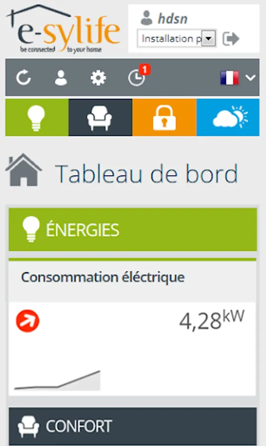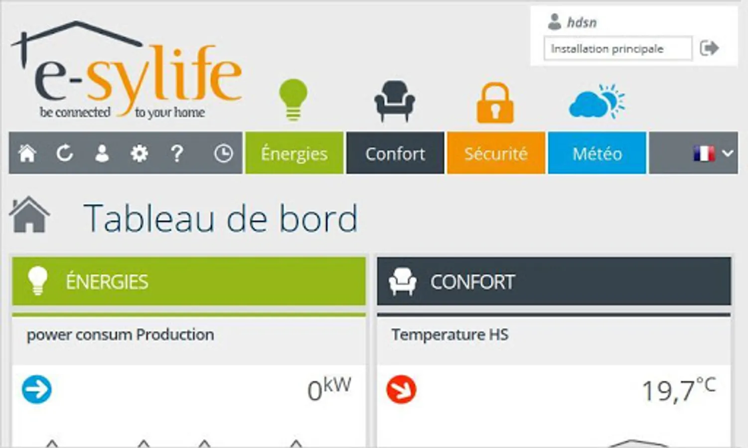 e-sylife is an all-in-one supervision of the home, with consultation on the android smartphone app or via a web browser on www.e-sylife.fr.