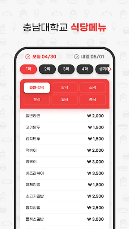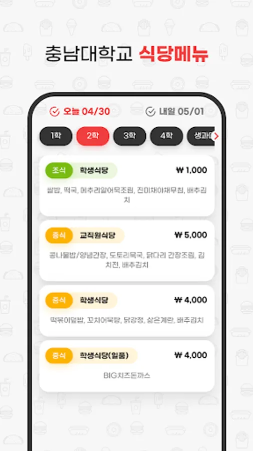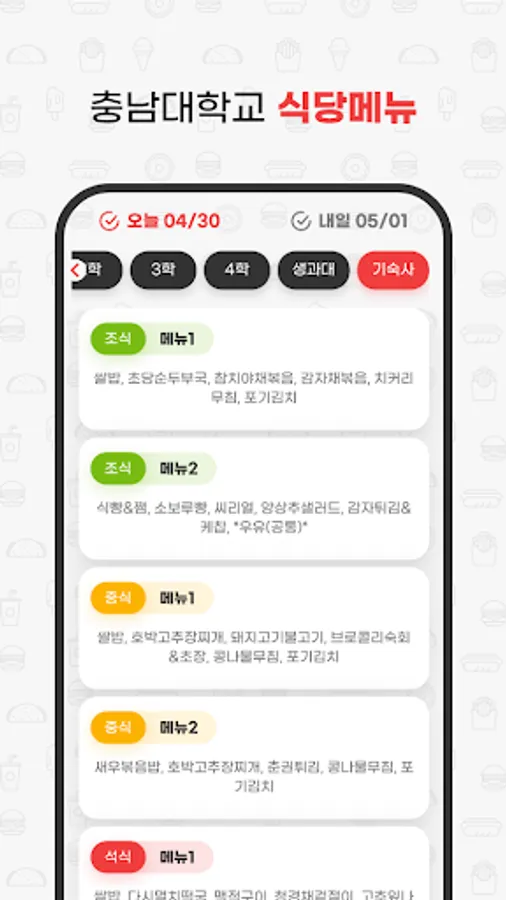 ※ If the menu data structure provided by the school is changed, it may not be able to be viewed from a certain moment. Don't curse at me~ I woke up because I was hurt.