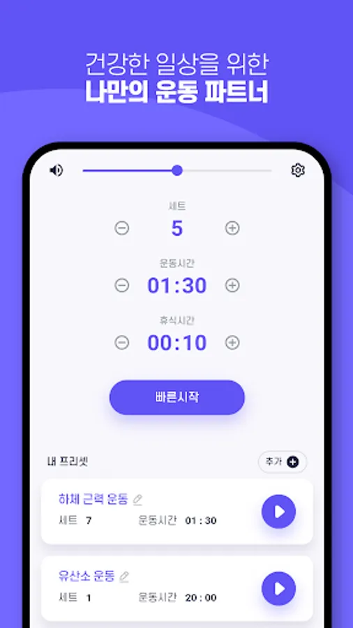 4. If preset setting is bothersome, enter the number of sets and exercise time and start quickly.